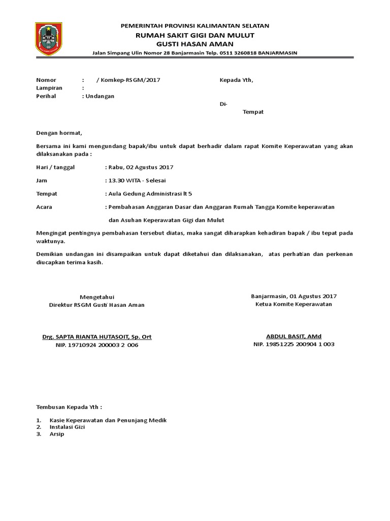 Contoh surat undangan resmi mengahdiri acara dibuat dan ditujukan bisa kepada individu atau sebuah kelompok dalam perusahaan sehingga memang biasanya ketua atau kepala sekolah yang di undang tidak bisa hadir disinilah akan di ganti dengan perwakilanya. Contoh surat undangan rapat resmi. Pada contoh surat ini tidak ditampilkan karena keterbatasan ruang. Documents similar to surat undangan komite sd. Sd negeri 1 mangkujayan ponorogo gelar rapat pleno komite.